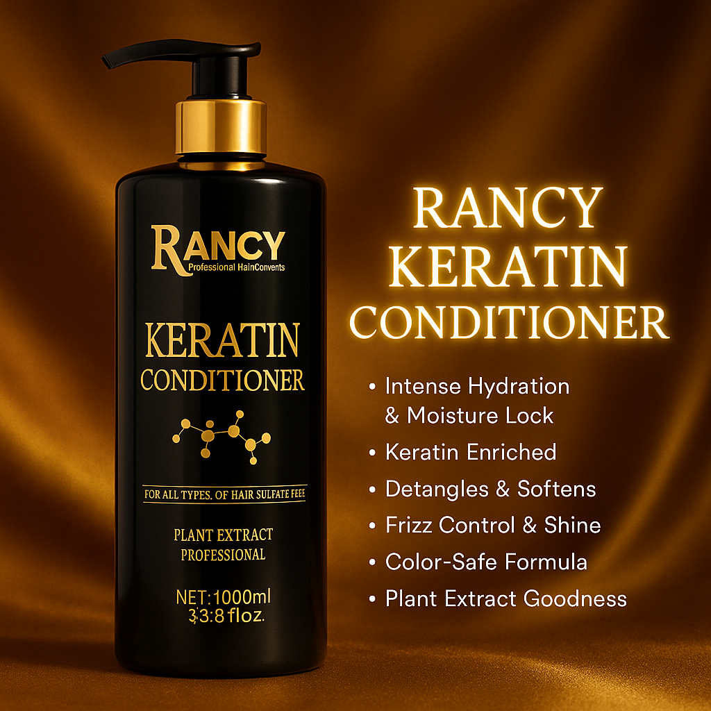 RANCY Keratin Conditioner is the perfect partner to our Keratin Shampoo, delivering intense hydration, detangling, and frizz control for a salon-smooth finish. Infused with keratin and plant extracts, it restores softness and shine to every strand.
